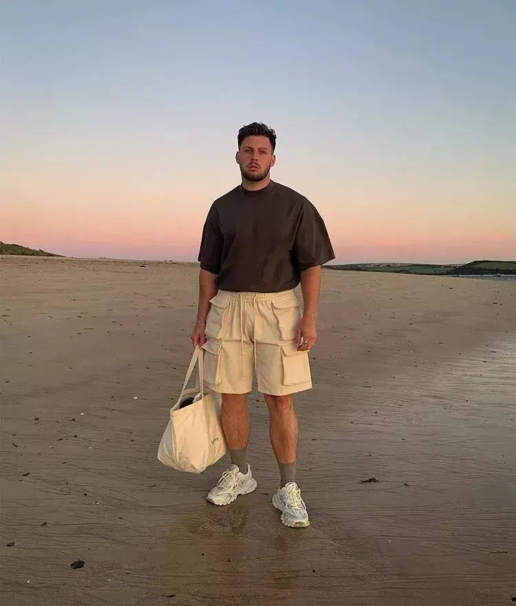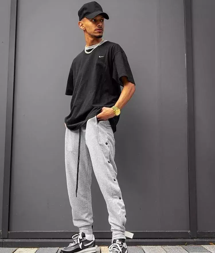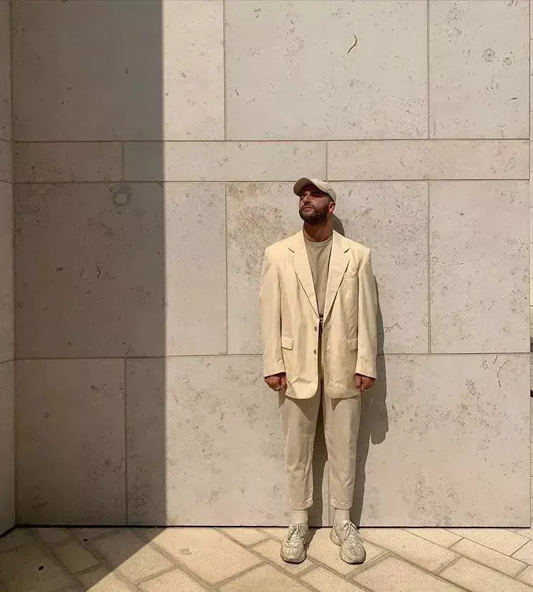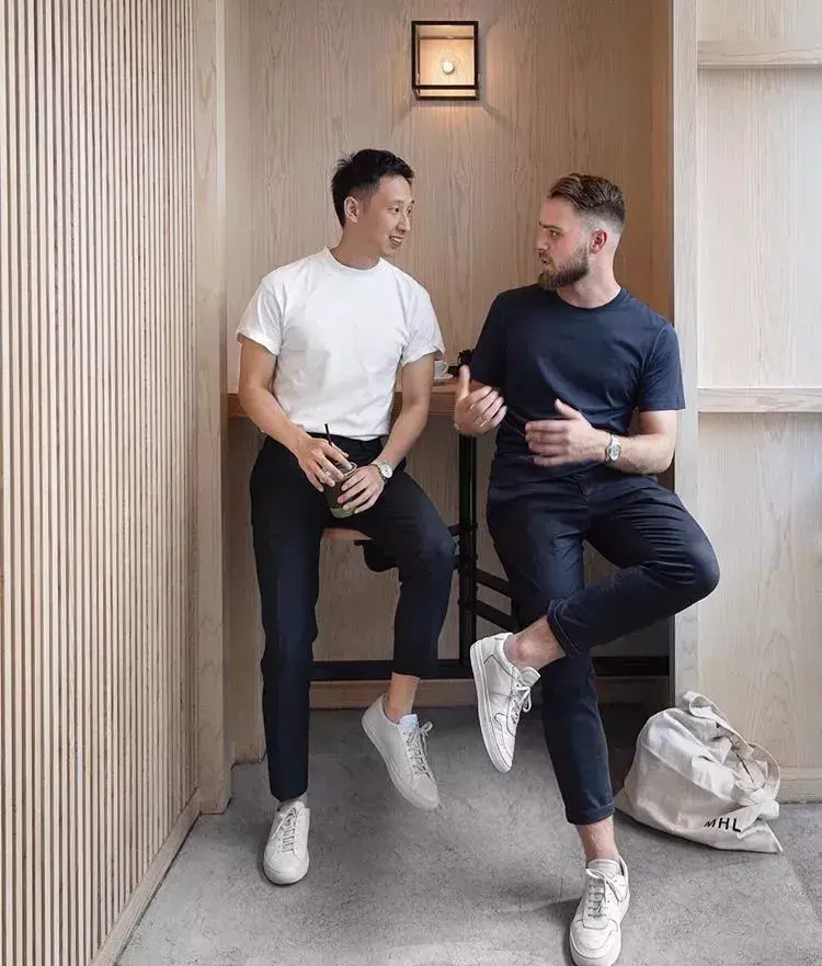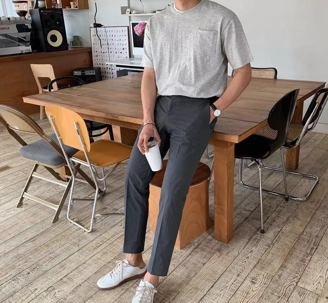 At this time, the plain T version can fit a little better, and the lower body can be matched with common business wear, such as suit pants, belts, Oxford Shoes, if you are worried that a plain T-shirt is too casual, you can also wear a plaid suit jacket to perfectly combine the conflict between casual and formal.