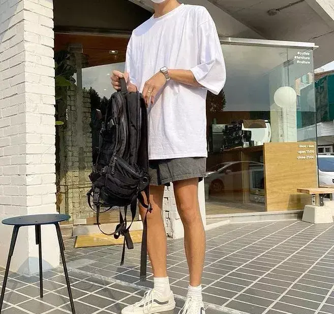 The classic style of Korean style is simple, fresh but fashionable. Su T chooses a loose fit to match it. The overall colors are mainly black, white and gray, and she chooses knee jeans. and ankle socks.