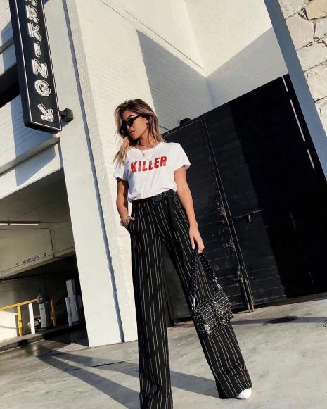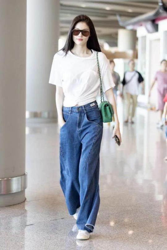 To see what is popular in the fashion circle, just look at the airport looks or street photos of female celebrities , they are definitely the first to wear the trend. How could they miss this comfortable and fashionable outfit of T-shirt + wide-leg pants?