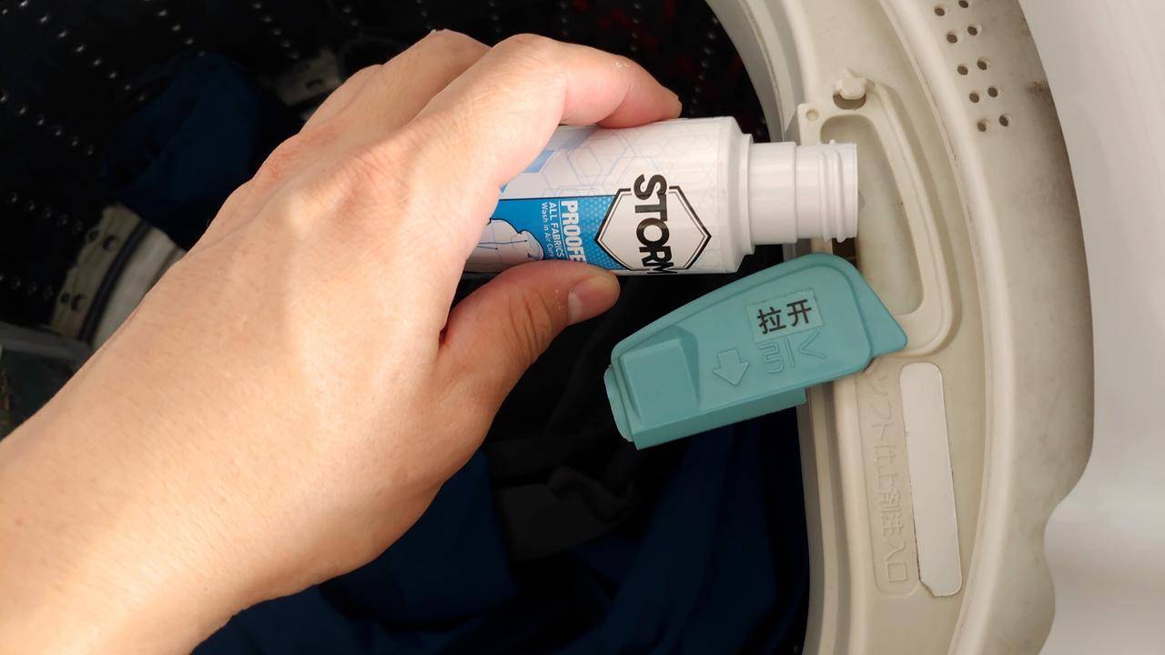 I poured the jacket cleaning solution into the “detergent” tank, and the water-washing waterproofing agent into the “fabric softener” tank of the washing machine, and selected the gentle setting. Fully automatic cleaning. I use all STORM products.