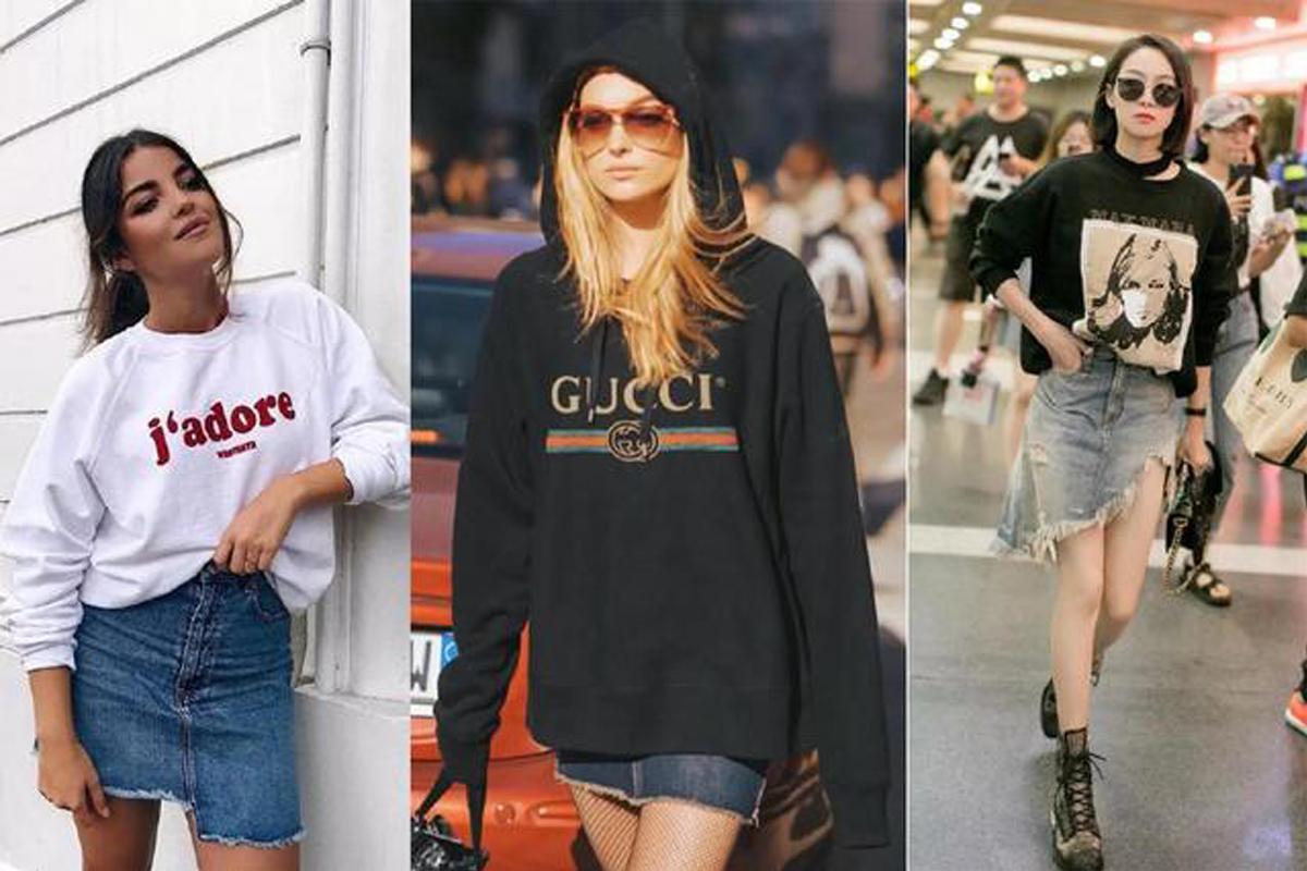 You can choose a loose oversize version of the hooded sweatshirt, which has a chic and uninhibited street feel. Pair it with a gauze pleated skirt and black loafers, which is casual and yet Without losing sophistication and elegance. Small girls should avoid wearing sweatshirts that are too baggy and choose a more fitted version.