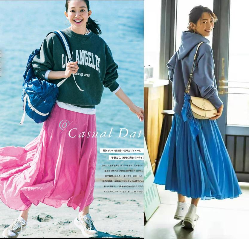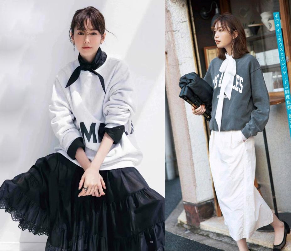 Sweatshirt is a very neutral item. Girls wearing sweatshirts must learn to weaken the sweatshirt through matching. Neutralization, adding soft femininity.