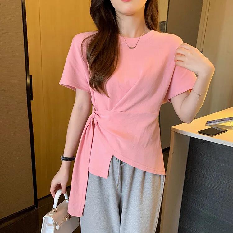 ● The hem design of the pink one is also irregular, but more thoughtful, with an extra piece in the front tucked in The side straps form irregular lengths and have a waist-cinching effect, which is really nice!