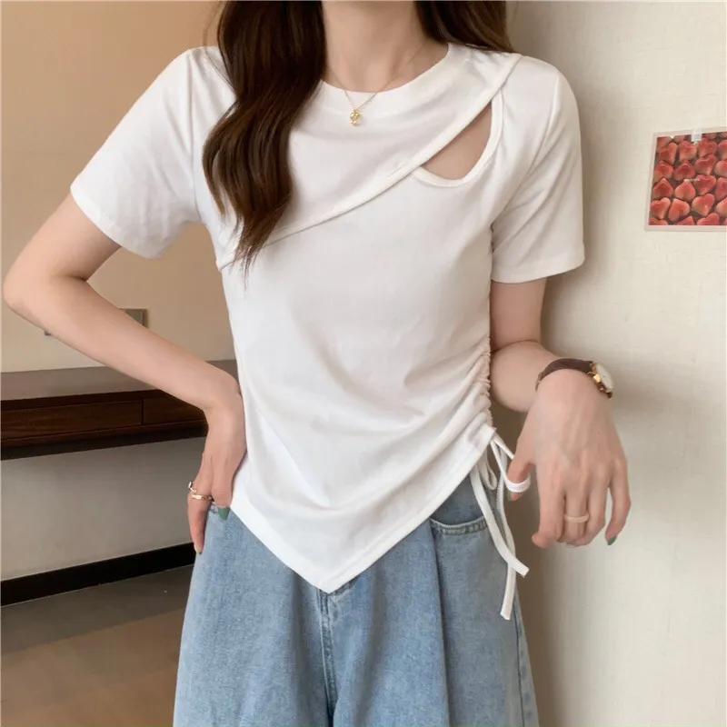 ● This white color is a little sexy in casual style, you can tell by looking at the hollows under the shoulders; You can adjust the length by pulling the rope, and the long little triangle on the front is the “strange” point!