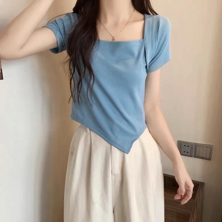 Looking at the upper part of this T-shirt, it looks normal Yes, but when you look at the hem, why is there an extra triangular tail? This is what I call “strange” today! Now it seems that it is quite unique, and the little twitch on the side is also quite cute! The small square collar is also unique!