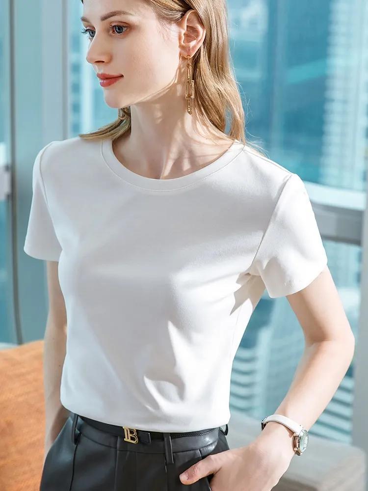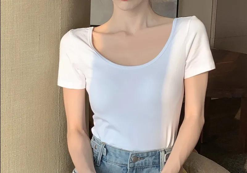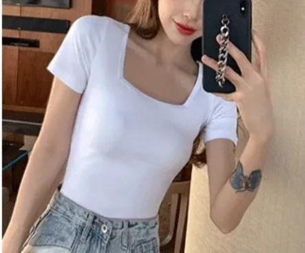 The square collar of white short-sleeved T-shirts is relatively rare. The square collar is also a large neckline. If the face is relatively square, the cheekbones will be more prominent, so it is not recommended. Choose a square neckline