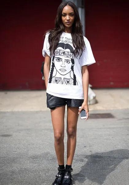The T-shirt is a simple item, and its strong sense of fashion comes from its simplicity. Therefore, when choosing T-shirts, try not to choose styles that are too fancy, or that include beads, sequins, or lace. These decorative styles will be counterproductive to your outfit because they are too complicated.