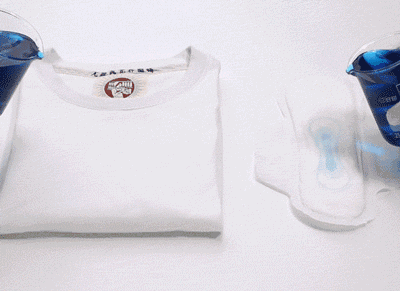 The paper towel on the left immediately gets wet and sticks to the back. Therefore, even if you sweat in the summer, your clothes will not stick to your body.