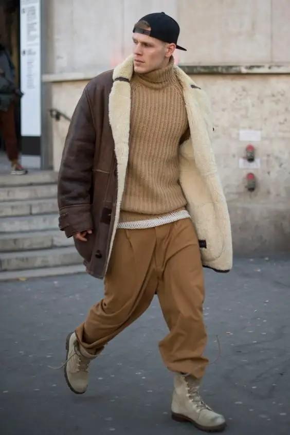 A more mature combination can limit the overall tone to black, white and gray , you can’t go wrong with a clean black sweater. Choose a gray plaid woolen coat to create a natural aura, giving you the image of a mature man. The trousers here should also match the suit trousers, and the whole atmosphere will be instantly full. The more mature men choose, the more tasteful they will be.