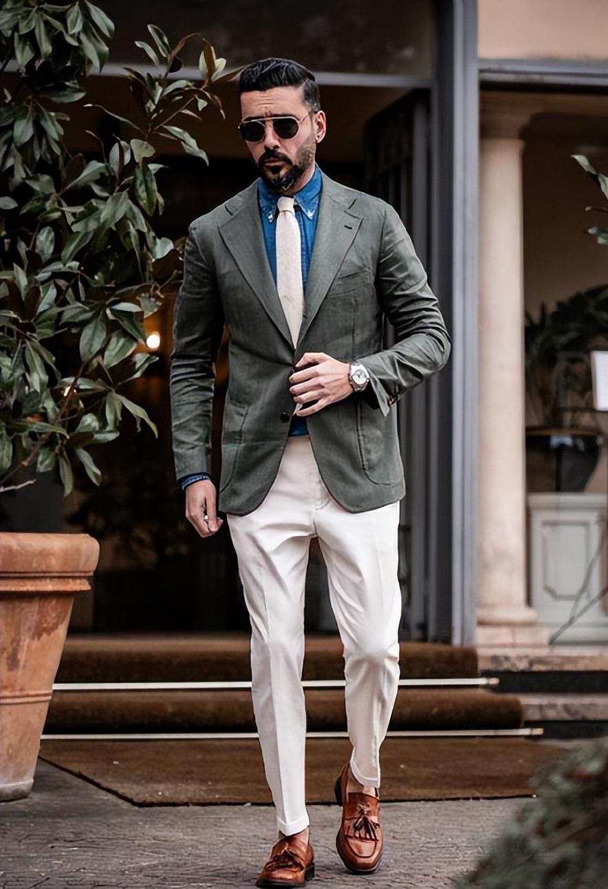 Many people have a misunderstanding about light-colored trousers. If you think it looks fat on your upper body, actually choosing the right style will make your look more beautiful. White and black have different sense of stability. It is more energetic and can be combined with suits of any color. There is no pressure on the upper body and it is also very dazzling in the crowd.