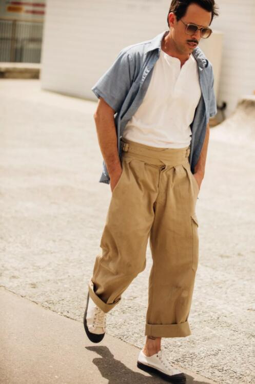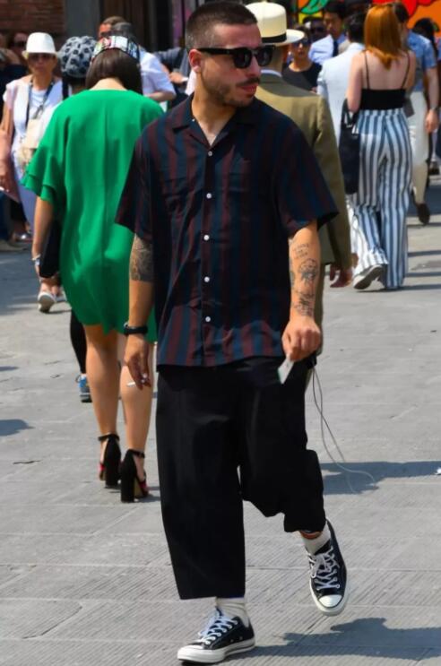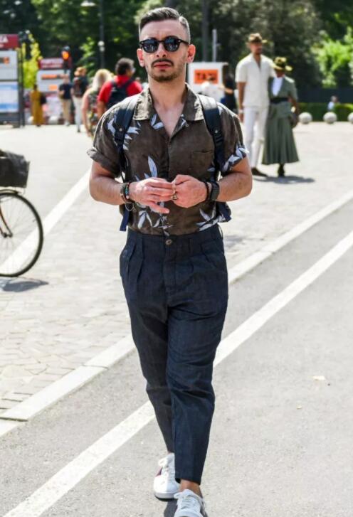 Compared with T-shirts, Short-sleeved shirts have more lines, so when paired with trousers, you need to choose a slightly looser version, but be careful not to be too wide, otherwise it will easily make you look thinner.