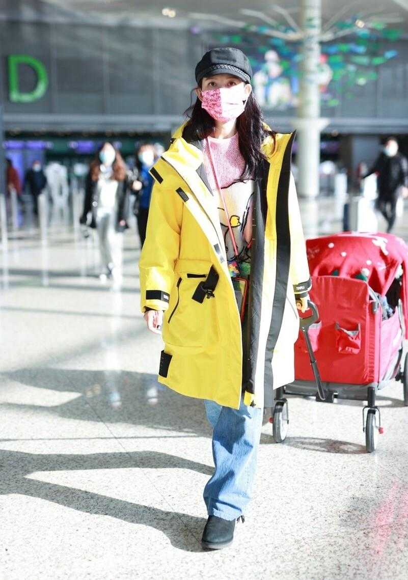 Some women have natural clothes-hanging figures. Women with this figure will have great advantages when dressing. Even if they dress randomly, they will look very fashionable. If you don’t believe it, Let’s take a look at Cai Shaofen. When walking to the airport, she wore a yellow jacket. This kind of extended bright yellow jacket would look like a walking lemon on ordinary people, but when worn on Cai Shaofen, who has a clothes rack figure, But it looks extremely fashionable.