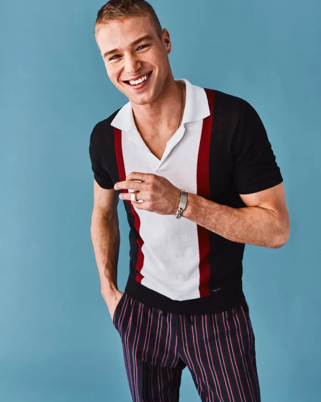 Don’t choose those with dense LOGOs Style, this will ruin your carefully selected noble items and turn your temperament into a pseudo-upper-class person on the street who is casual and does not understand fashion. You can choose a pattern that has some texture but can blend well with the overall tone of the Polo shirt, such as a knitted style with fine lines.