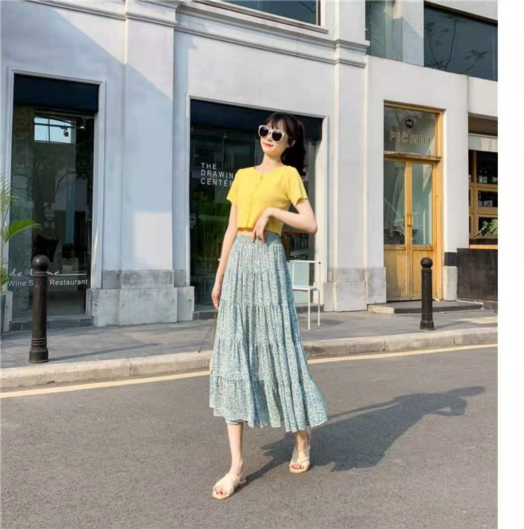 In the spring When dressing up in the summer festival, sweet and age-reducing floral elements are always indispensable. You can choose a yellow T-shirt with an elegant floral skirt. The lively and playful color scheme is suitable for young women to wear and show off their full personality. It gives you a sense of youthful vitality and enhances your gentle temperament.