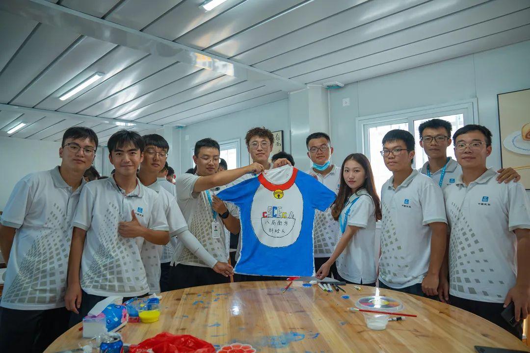 Recently, the Shenzhen Branch of China Construction Eighth Engineering Group Southern Company held the 2020 We held a meeting for new employees and carried out the “I Spoke the Company·Gift to Southern Company” cultural shirt production activity. New students in each system of the branch formed their own groups to conduct on-site design and use their brushes to outline their blessings to the company.