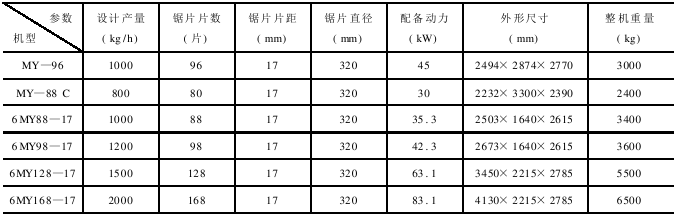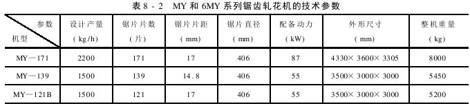 The technical parameters of MY series and 6MY series sawtooth gins are shown in Table 8-2.