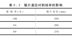 The speed of the saw blade drum is one of the important factors that determines the productivity of the stripping machine. The relationship between saw blade drum speed, lint stripping machine productivity and cotton lint yield is shown in Table 9-2. The relationship between the rotation speed of the saw blade drum and the lint yield, the impurity content of short lint and the broken cotton seed rate are shown in Table 9-3 and Table 9-4.