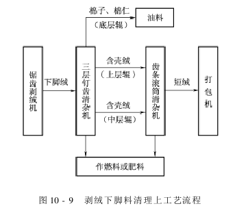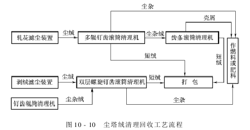 Dust velvet contains dust velvet recycled from the ginning workshop and the stripping workshop. The cleaning process is shown in Figure 10-10.