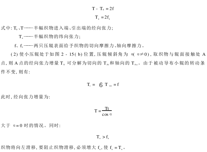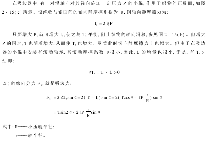 ② To balance Ta, a sufficiently large axial static friction force fa must be provided, so P must be large enough. Otherwise, it will not only affect the edge suction, but may even wrinkle or escape. However, P cannot be too large. Because, if P is too large, it will not only produce indentations on the fabric, but may also affect the fastness of the fabric fiber. Therefore, when installing the edge suction device, the pressure P between the small rollers must be carefully adjusted according to the type of fabric and α angle.