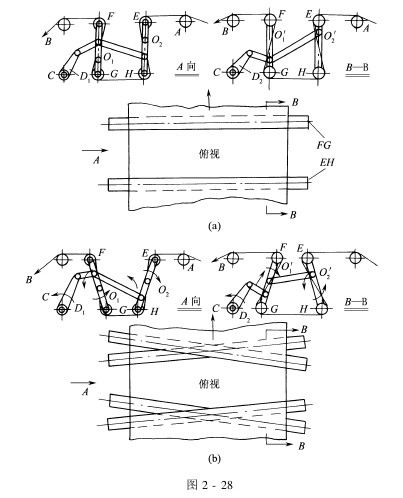 If the fabric is running normally, the weft-setting rollers are parallel to each other, and the left and right edges of the fabric have equal lengths between the passive guide rollers A and B, as shown in Figure 2-28(a). The warp tension is the same across the entire width of the fabric. The relative running speed of each warp yarn is equal, that is, there is no relative “lead” or “lag” phenomenon in each section of the running warp yarn.