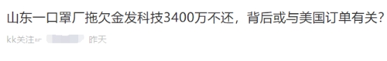 Not long after Kingfa’s 6.8 billion mask order from the United States ended, but according to the semi-annual report released by Kingfa, it was obviously not only the United States that suffered losses in the first half of the year. A Shandong company paid 34.4 million yuan for Arrears topped the Goldman bad debt preparation ranking list.